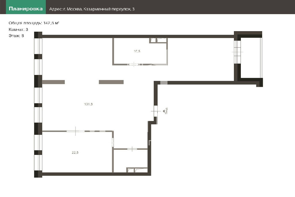 ID 19680 Предлагается 3-комнатная квартира без отделки в ЖК "Дом на Покровском бульваре".